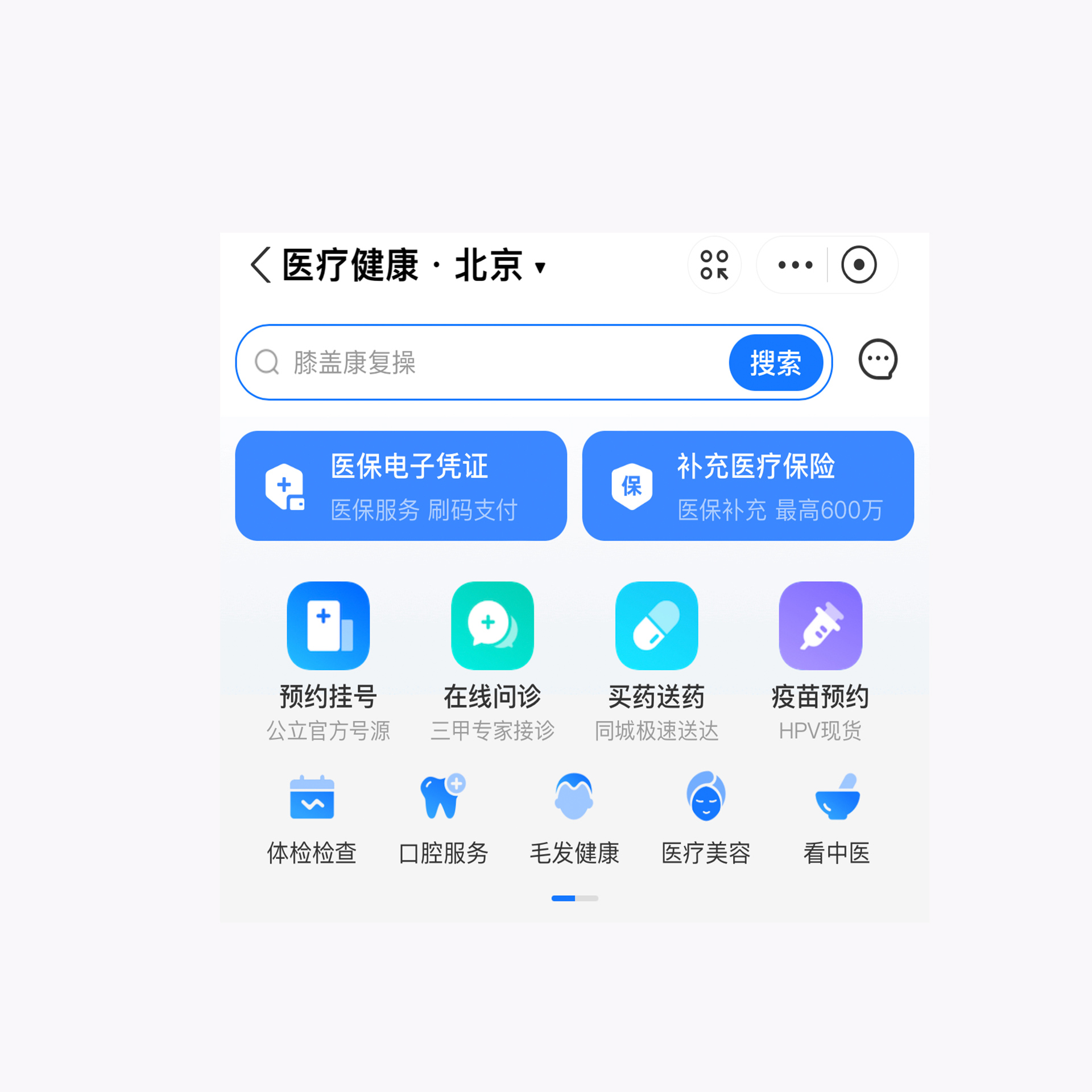 应用中心--医疗健康--预约挂号。也可以首页直接搜索「挂号」
