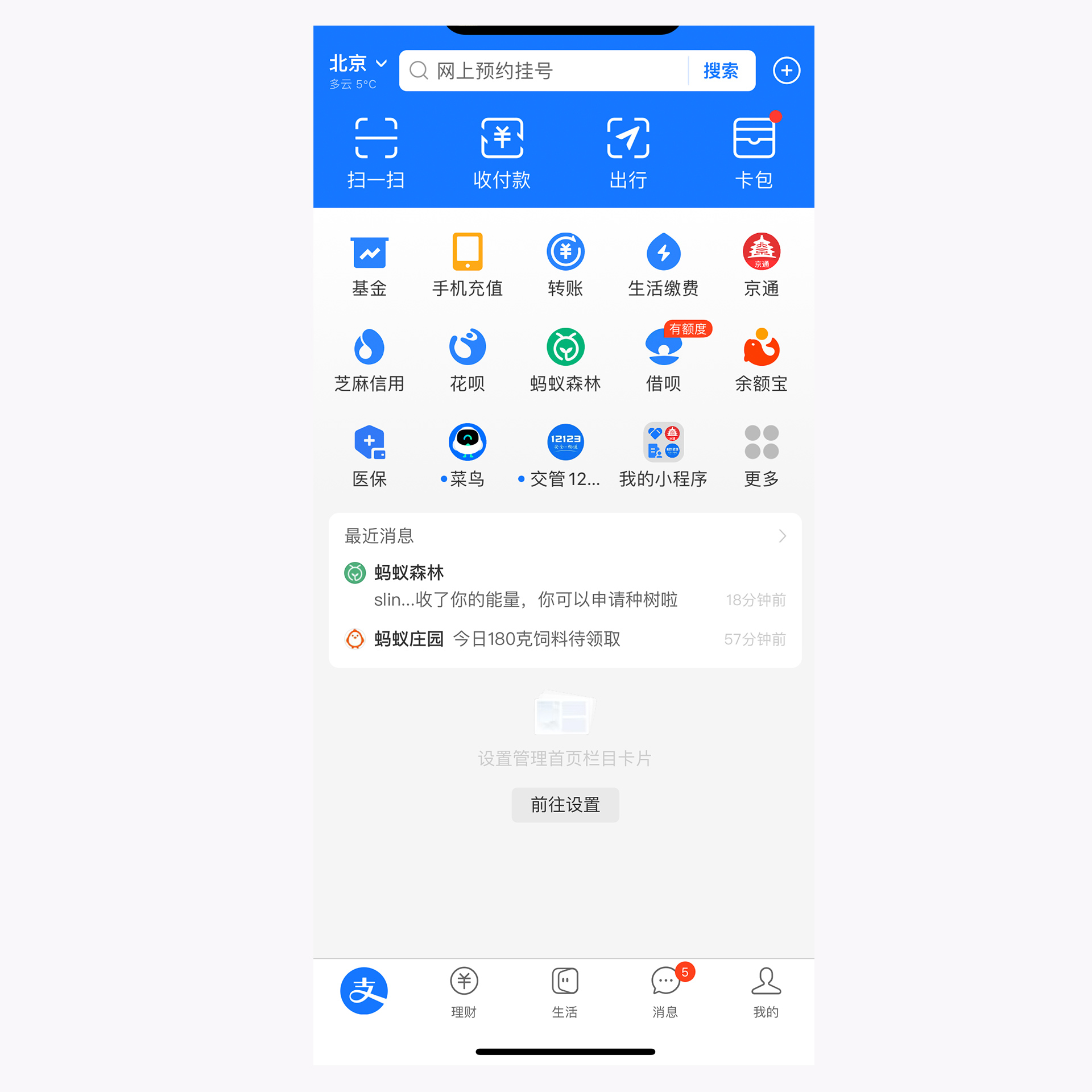 支付宝这一点儿做得越来越好,把看什么的权利交还给用户,支付宝首页可以变得很简洁清爽。“爹味儿”没那么重了,支付宝还是听劝。