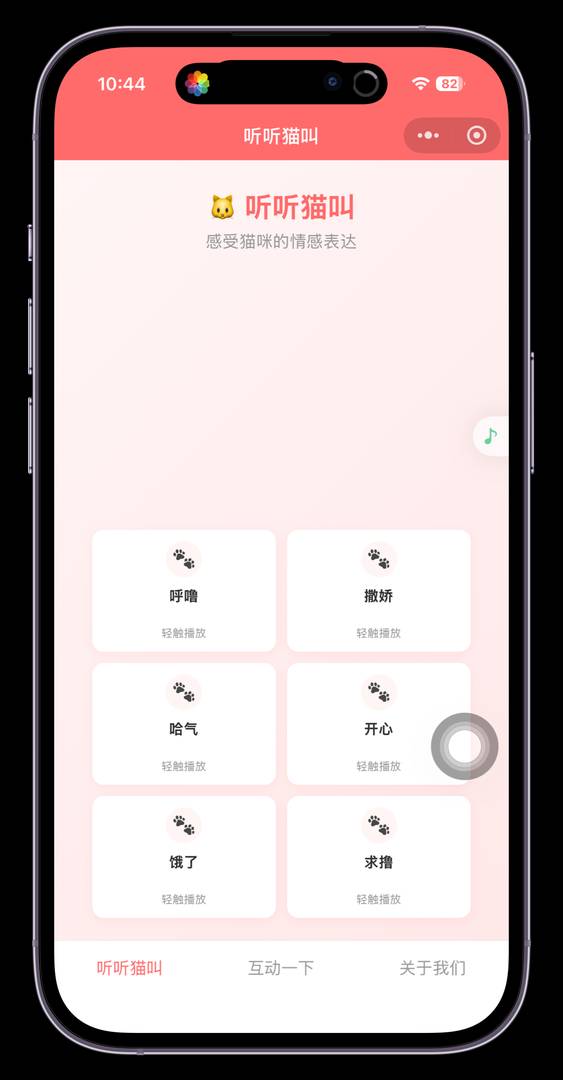 她目前就实现了一个简单的版本。可以听猫猫叫和猫咪互动。